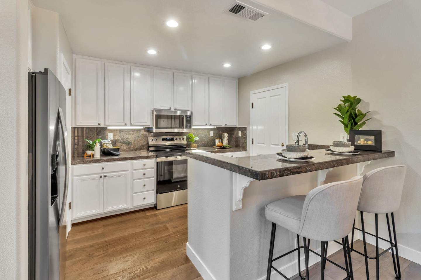 Fabulous detached single family home with upgrades throughout featuring 3 bedrooms 2.5 baths and over 1,330 square feet (commonly referenced / sold as the 1,481sf plan). Gorgeous community just steps to downtown offering restaurants, parks, and weekly Sunday farmers market! Enjoy fresh paint, new appliances in the kitchen, a spacious living room with vaulted ceilings, fireplace and lots of natural light. Features a dining area with a brick patio. Kitchen features a spacious pantry, and brand new stainless steel appliances, and access to a full 2 car side-by-side garage. A ground floor powder room is located adjacent to the living room. Upstairs are 3 spacious bedrooms and 2 full bathrooms. The primary bedroom features vaulted ceiling, and a spacious walk in closet. Steps to downtown Campbell, Pruneyard Shopping center, Campbell Park and Los Gatos Creek Trail, Campbell Community Center and just a short drive to Whole Foods, as well as easy access to major commuting routes such as HW 17, and San Tomas Expressway. Walk to the best farmers market in the South Bay every Sunday located in Downtown Campbell. Make this inviting property your home and experience the charm of downtown living and the comfort of updated and serene space.